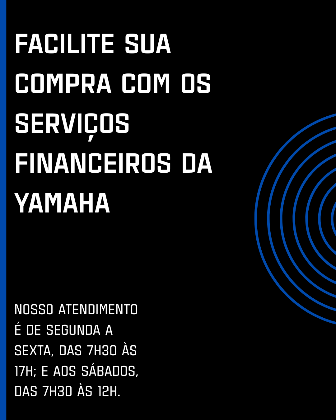 Trabalhamos com o Banco Yamaha, que oferece condições exclusivas, seguras e flexíveis para você sair de motor novo sem complicações!